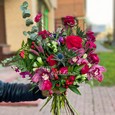 Композиция с розами и эустомой