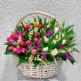Цыпленок из хризантем в корзине