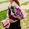 Коробочка сиреневых гвоздик и роз