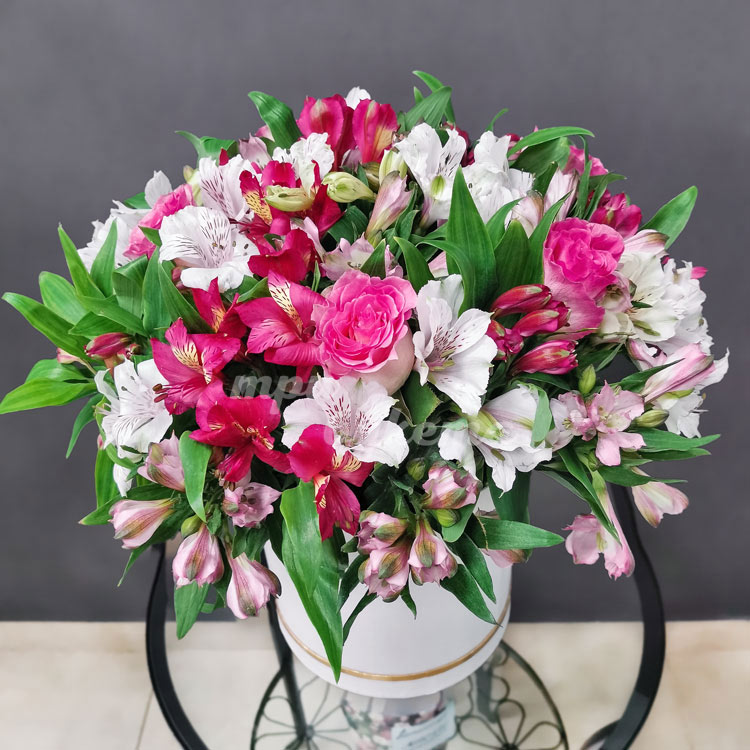 30 альстромерий и 5 роз в коробке