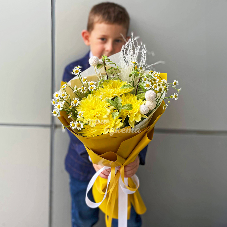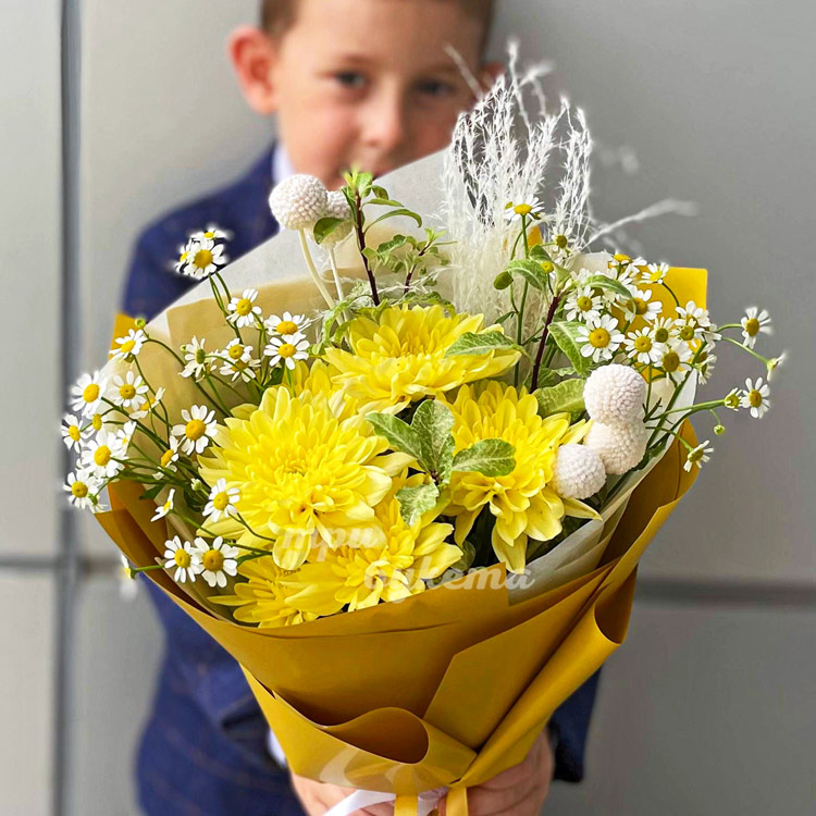 Букет хризантем и ромашек на 1 сентября
