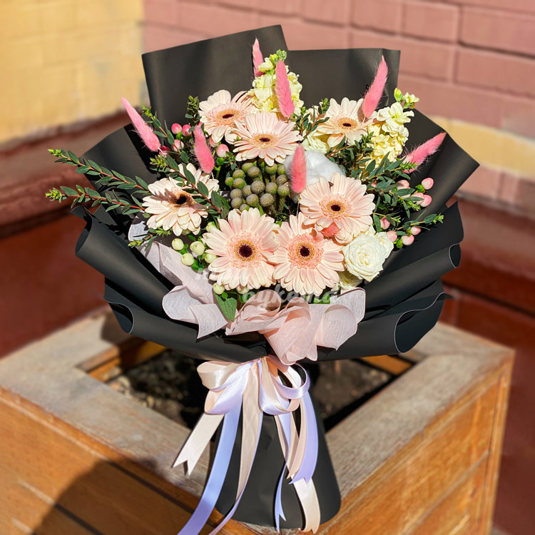 - Персиковые герберы, 7 шт.