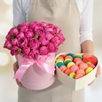 Букет из гвоздик, роз и тюльпанов