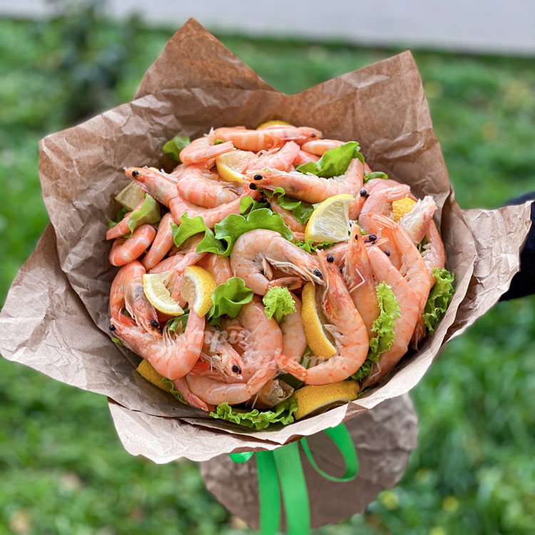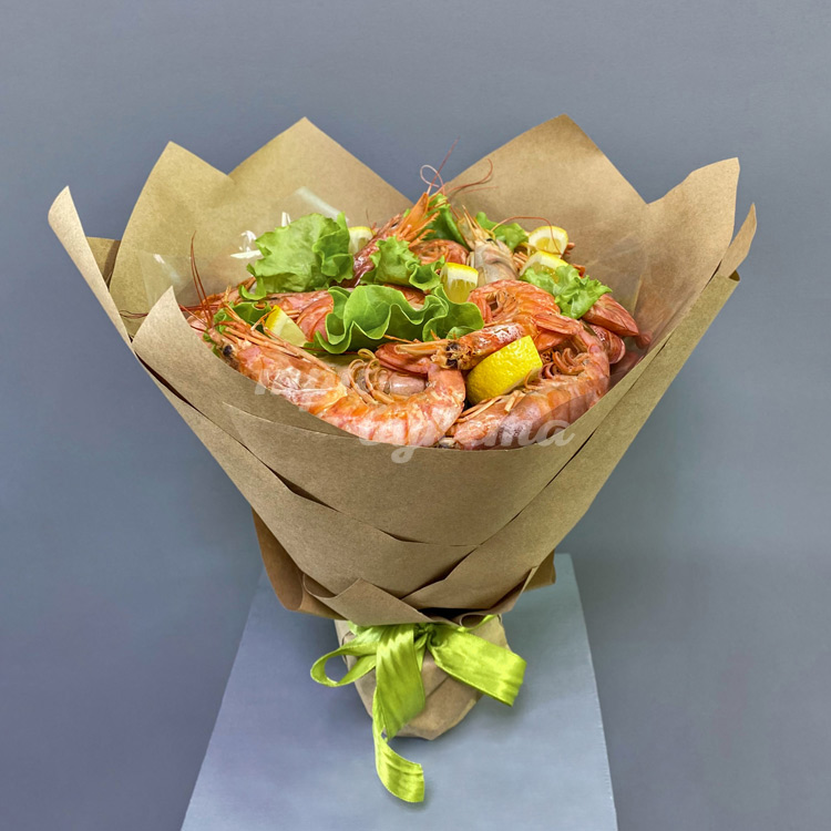 Букет из креветок, лимона и салата