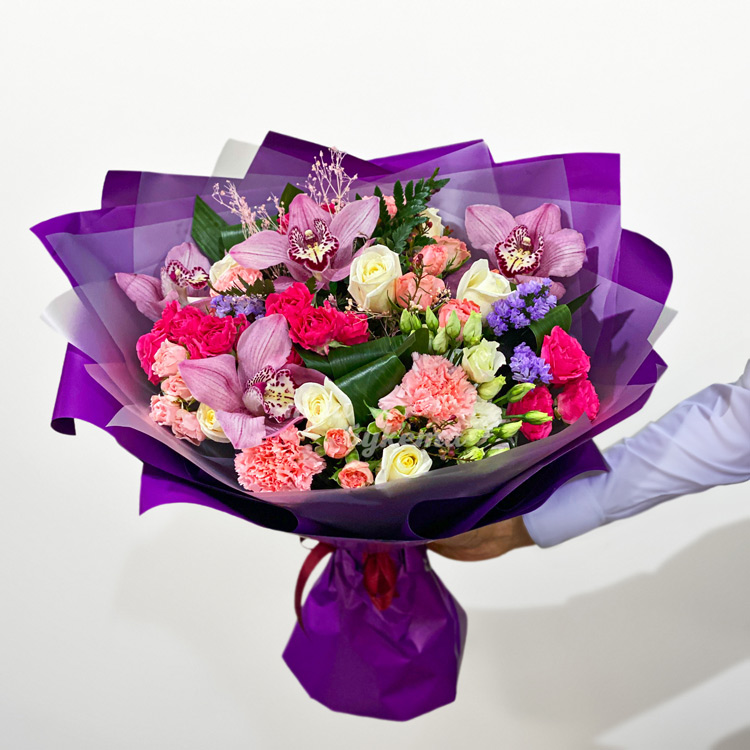 Букет из кустовых роз и орхидей