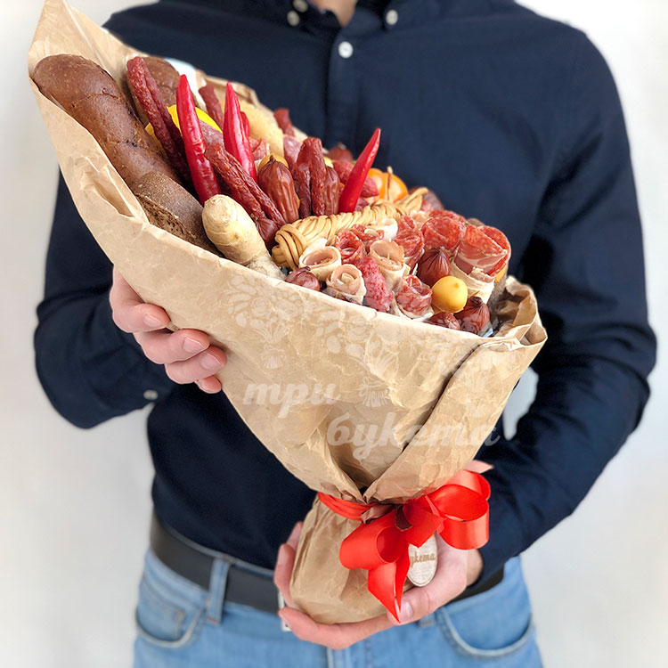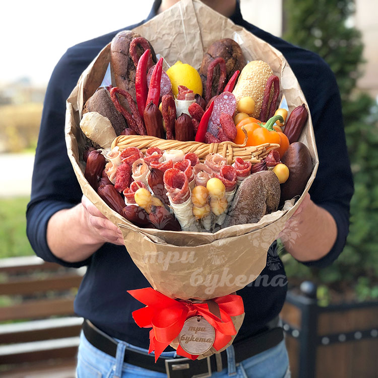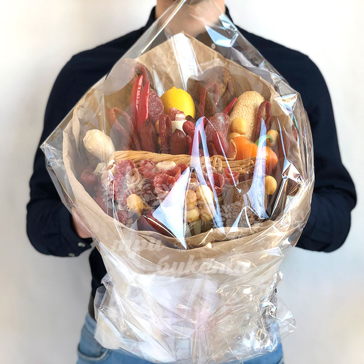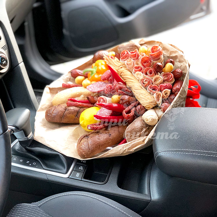 Букет из мясной нарезки и багетов