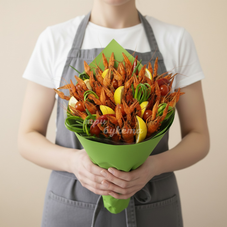 Букет из раков, помидоров и лимона