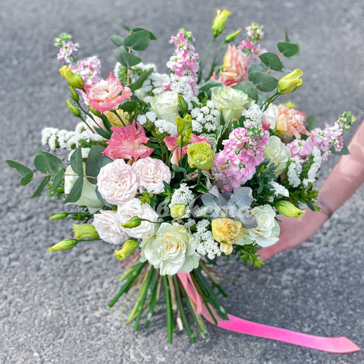 Букет из роз, маттиол и статицы