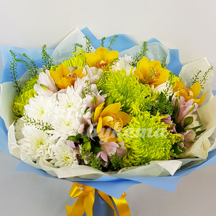 Букет из зеленых и белых хризантем