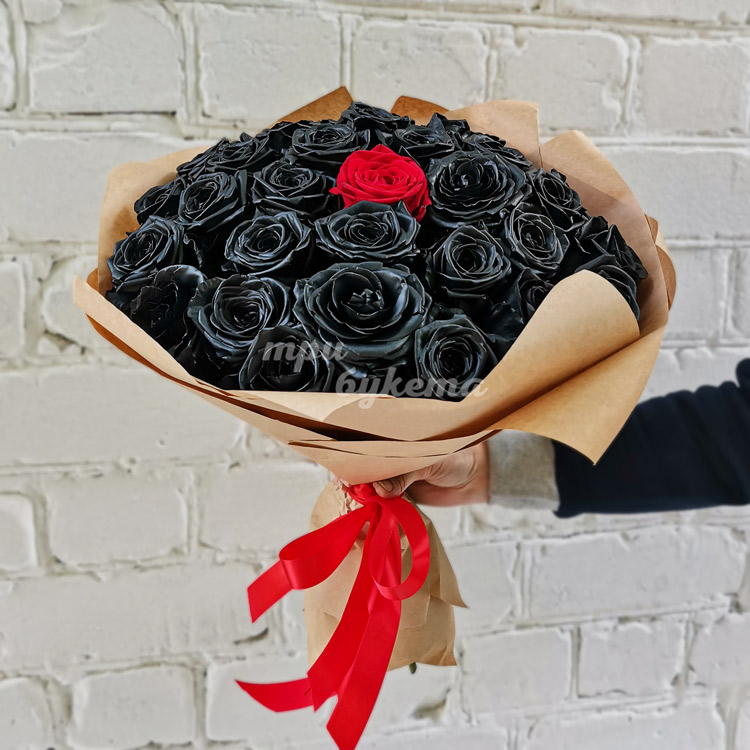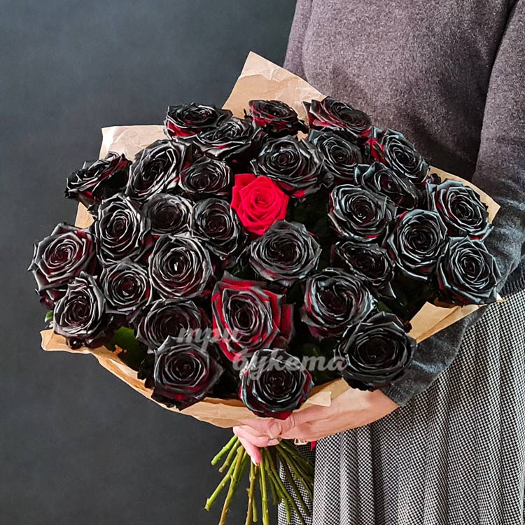 - Черные розы, 30 шт.