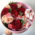 Коробка белых эустом и розовых гортензий