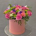 Коробка розовых гвоздик, роз и гортензии