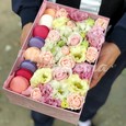 Коробка-сердце с розами, пионами и эвкалиптом