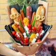 Коробка желтых тюльпанов с эвкалиптом