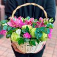 Огромная корзина ярких роз и орхидей