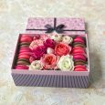 Персиковые пионовидные розы в коробке