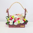 Ранункулюсы и кустовые розы в ящике